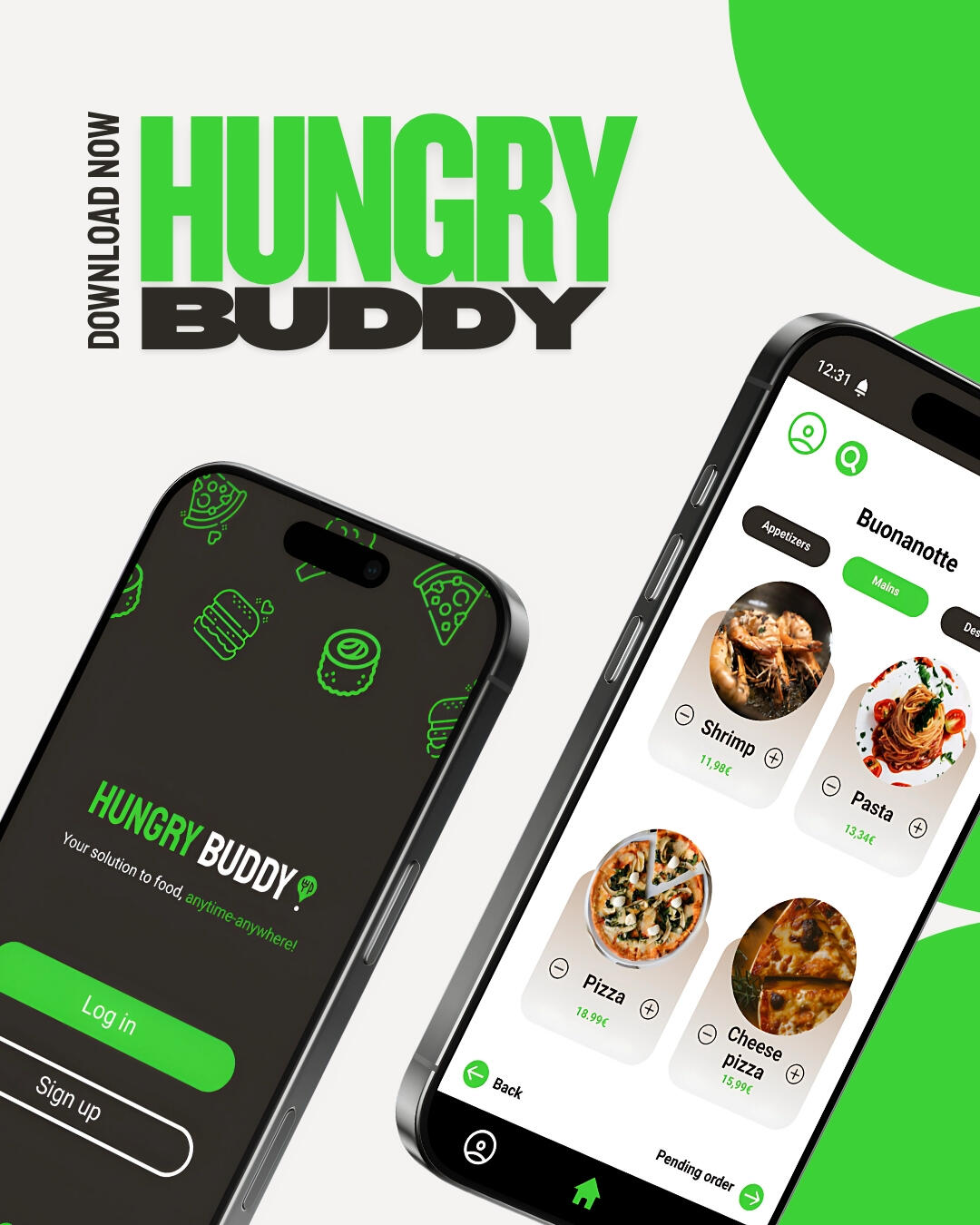 "Hungry Buddy" is a food delivery application. It features a catchy, memorable brand with a simple, yet meaningful layout, designed with the target audience in mind. Everything is well-proportioned and visually appealing. It’s an experience. With a bold, memorable brand and an intuitive design, ordering food becomes fun, engaging, and rewarding through playful gamification.Deliverables: